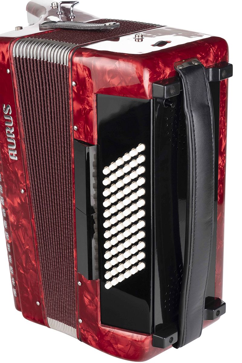 Левая рука: готовая, 72 кнопки, 2 регистра, 4 ряда.