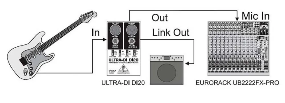 Гибкое конфигурирование: моно, 2-канальный или стереорежим DI-бокс с переключаемым режимом link