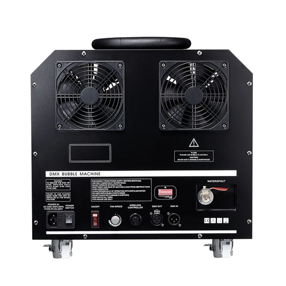 POPO-1000Y состоит из двух генераторов и может производить большое количество пузырей. Пластиковая емкость для жидкости гарантирует отсутствие ржавчины и протечек. Расстояние и объем выпускаемых пузырей можно контролировать вручную, с помощью пульта дистанционного управления W-2 или DMX.