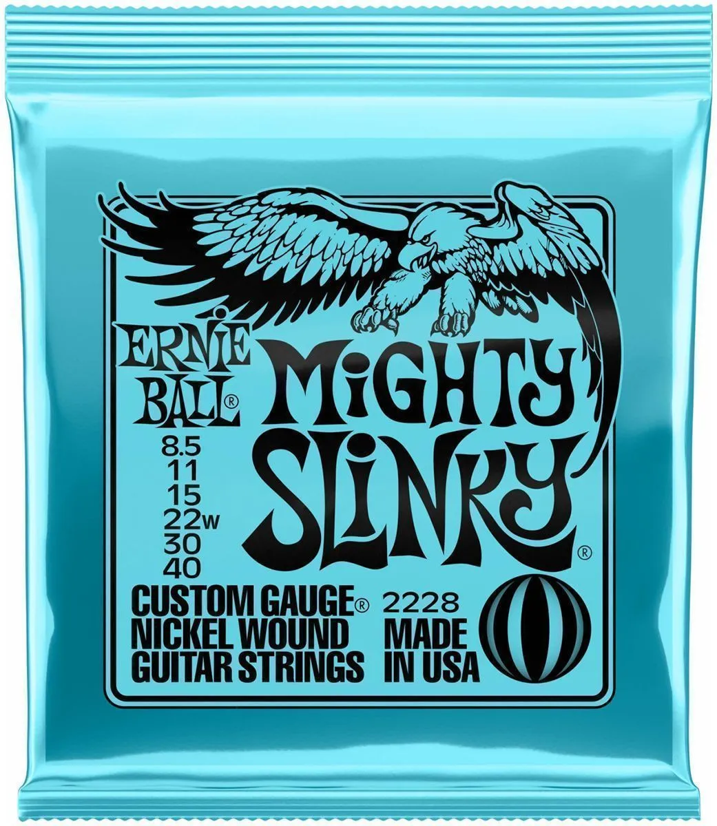 Струны Ernie Ball 2228 серии Mighty Slinky Nickel Wound для электрогитары отличаются слабым натяжением по всем шести струнам.
