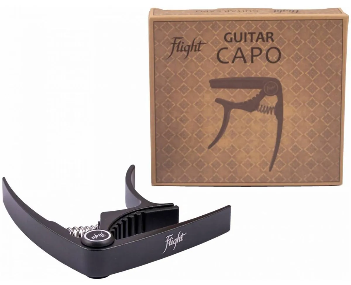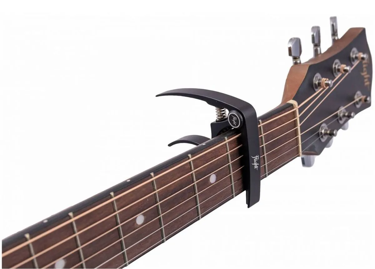 Каподастр Flight FCG-BK разработан специально для гитары и сделан из алюминия. Пружинный механизм каподастра позволит вам менять тональность инструмента буквально на лету. Он идеально подходит для акустической гитары и исключает риск дребезжания или повреждения инструмента. Каподастр поставляется в экологичной упаковке.
