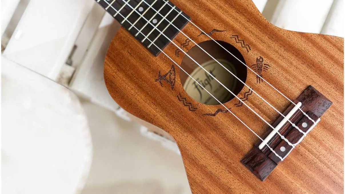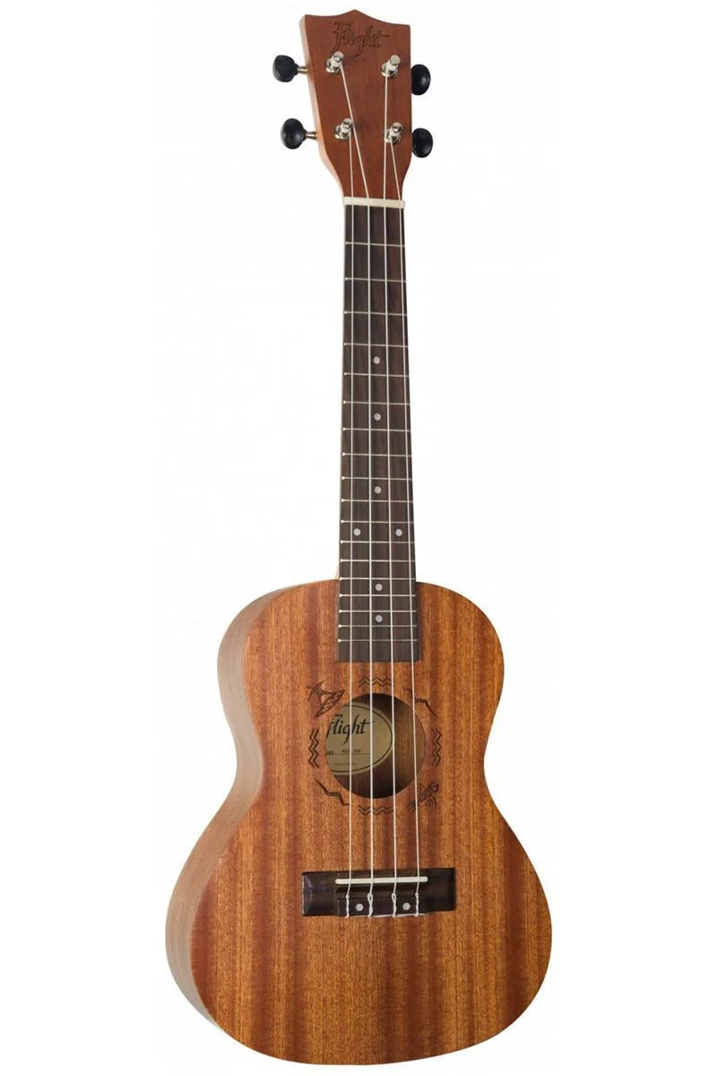 Строгая красота натурального дерева, традиционно высокое качество Flight, сочный яркий звук и по сравнению с укулеле сопрано больше возможностей за счет того, что на рабочей поверхности грифа NUC310 имеется 18 ладов.
