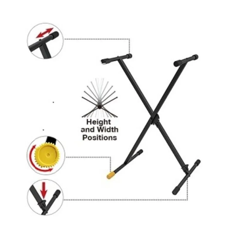Подставка для клавишных инструментов Hercules EZStep KS100B имеет складную конструкцию, занимает 88% места, необходимого для хранения полноразмерной подставки, подставка устанавливается в 6 различных положениях с помощью ножного переключателя.
