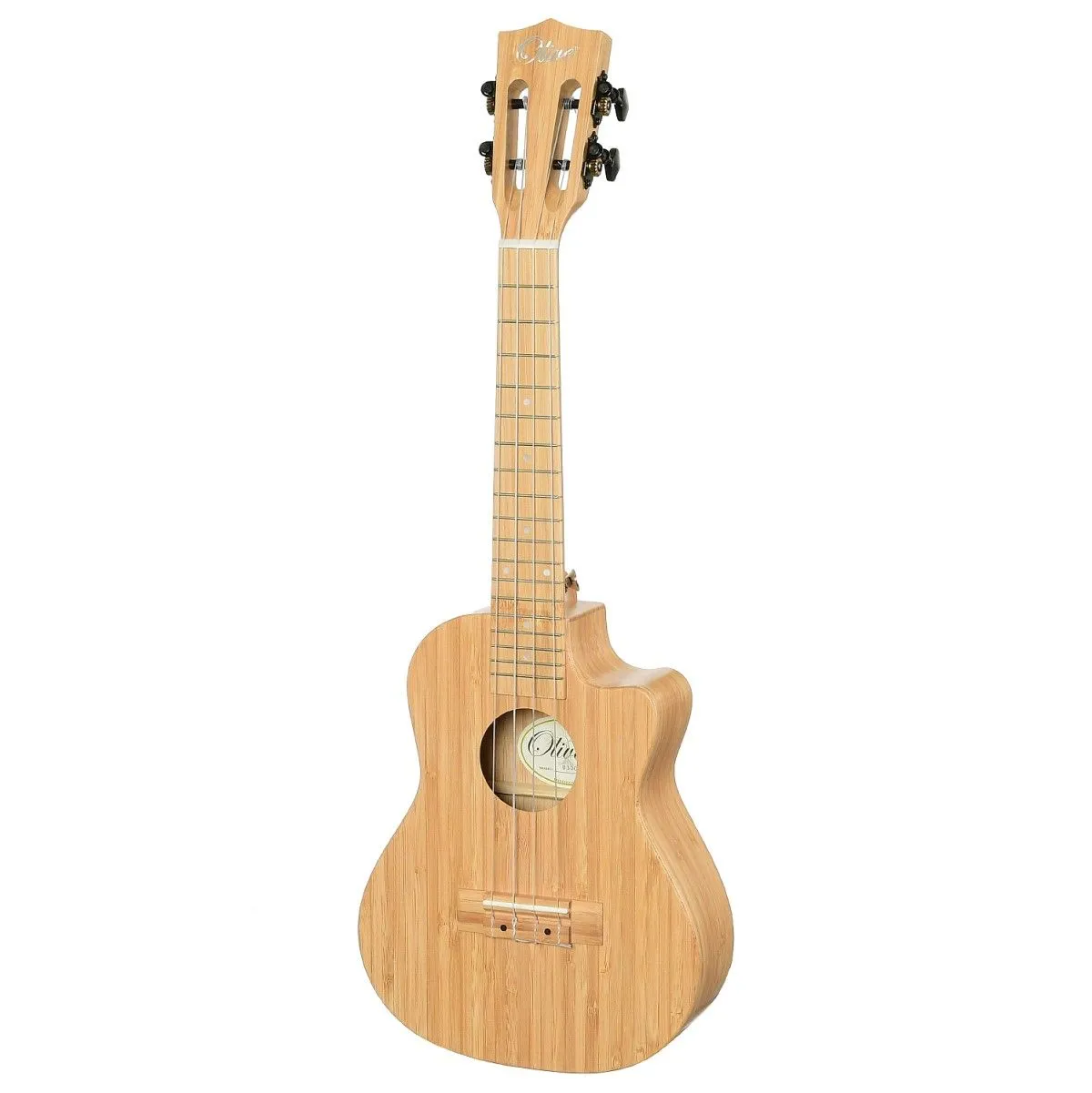 Olive U300 Укулеле концертная с вырезом. Фирменный утеплённый чехол. Верхняя. нижняя дека, обечайка и гриф – массив бамбука, накладка на гриф и струнодержатель - бамбук, колки - чёрные, открытый механизм, отделка – матовый лак.